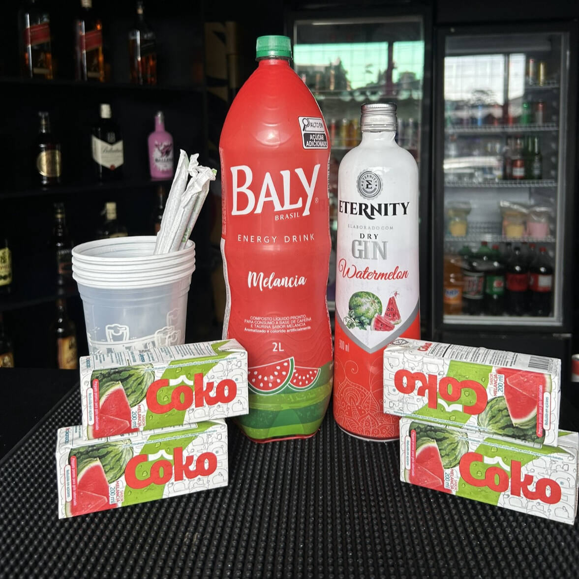 Combo Gin Eternity + Bally Melancia 2l + 4 Gelos + 4 Copos