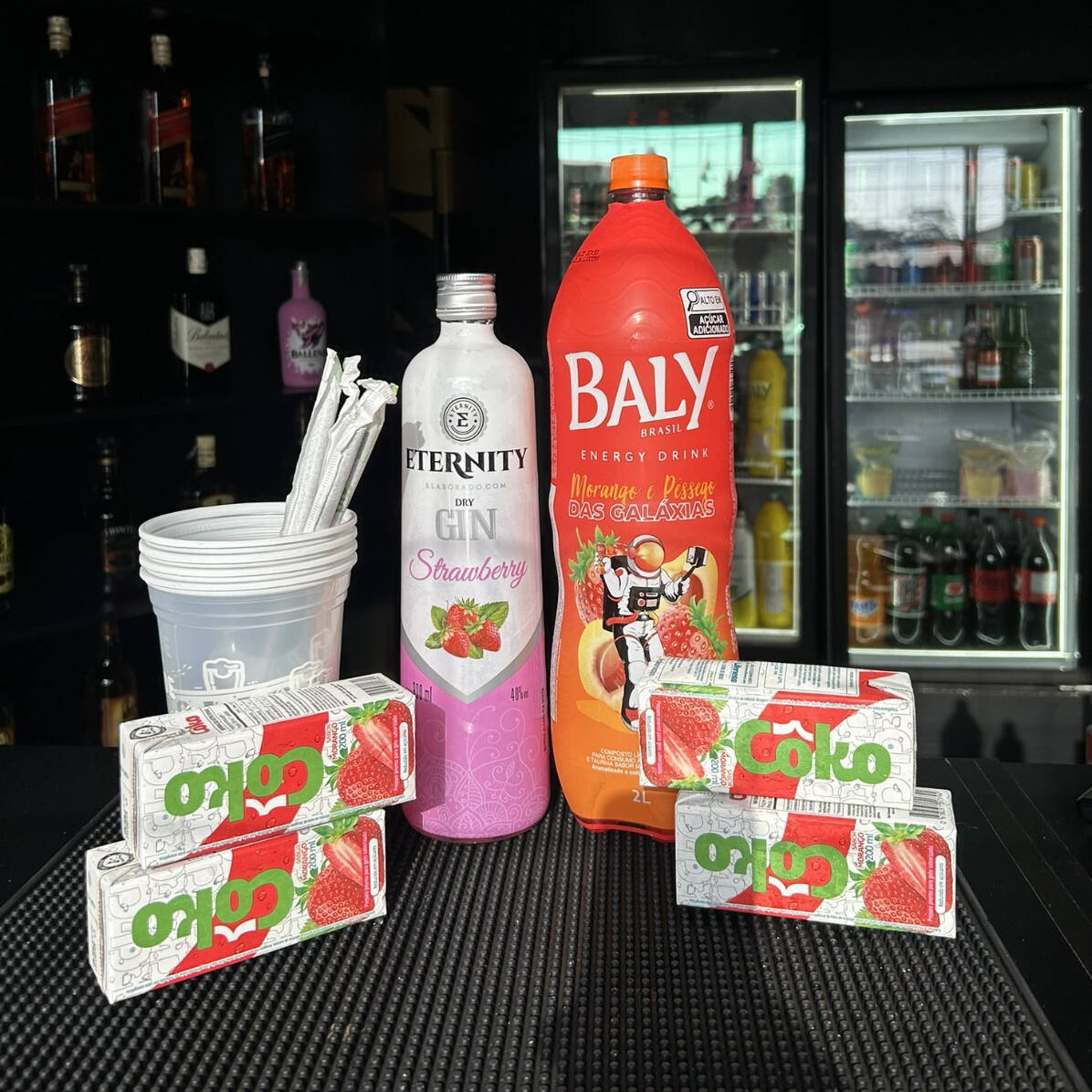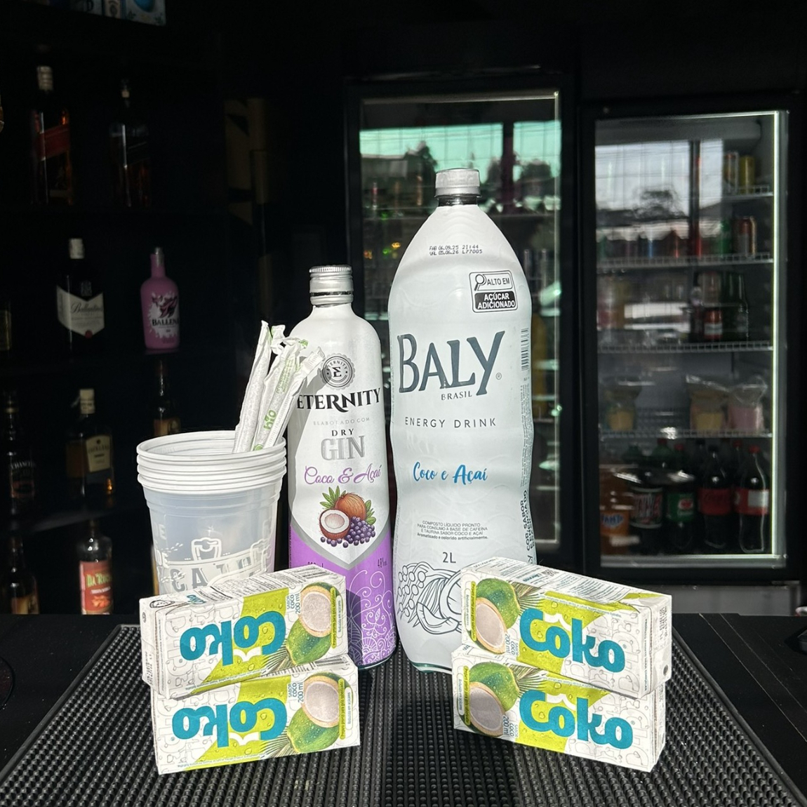 Combo Gin Eternity Coco E Açaí + Bally Coco 2l + 4 Gelos + 4 Copos