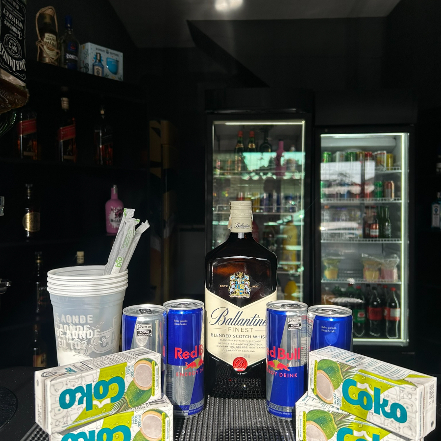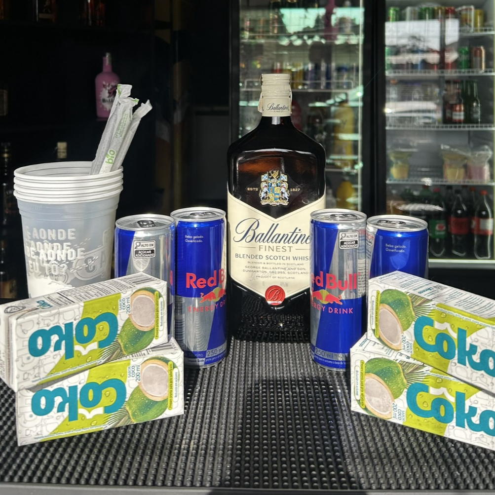 Combo Ballantine’s – 4 Energéticos + 4 Gelos De Coco + 4 Copos