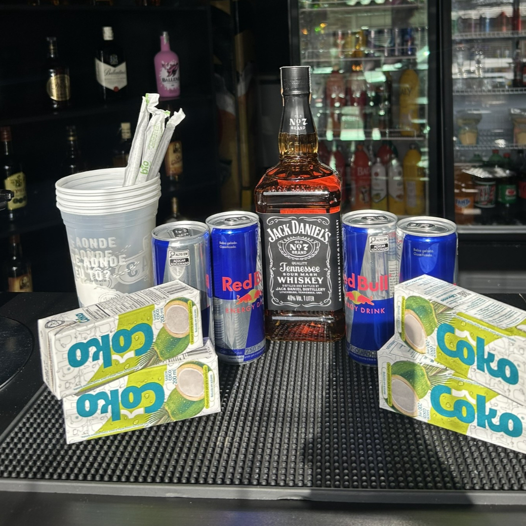 Combo Jack Daniel’s – 4 Energéticos + 4 Gelos De Coco + 4 Copos