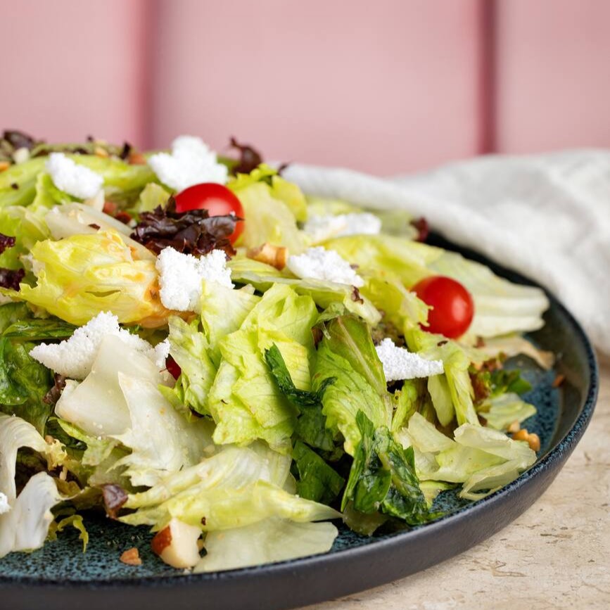 Mix de folhas verdes , tomate cereja e cenoura ralada. Item pode conter mudanças dependendo da disponibilidade do Dia. Com a opção do molho, mostarda e mel ou azeite limão , colocar na observação.