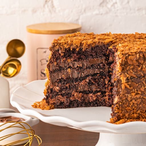 Bolo de chocolate, recheio de brigadeiro ao leite e coberto com Nutella e farofa crocante belga. Validade 4 dias contado da fabricação (vide embalagem). Peso aproximado 150g.