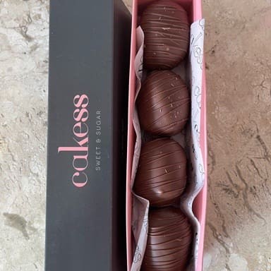 Caixa presente personalizada Cakess com mix de brigadeiros do Dia. Disponibilidade pode variar durante o Dia. (Foto ilustrativa. Os doces que acompanham a caixa são brigadeiros enrolados disponíveis o Dia!