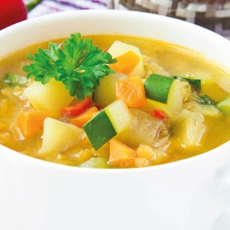 Apresentamos a nossa deliciosa e nutritiva 'Sopa de Legumes', um destaque no nosso Cardápio Vegano. Este prato é uma harmoniosa combinação de batatas suculentas, cenoura rica em sabor, chuchu refrescante e abobrinha tenra. Cada ingrediente é meticulosamente selecionado para criar um prato de alta qualidade. Acrescentamos um toque final com salsinha fresca e aromática, criando uma experiência gastr
