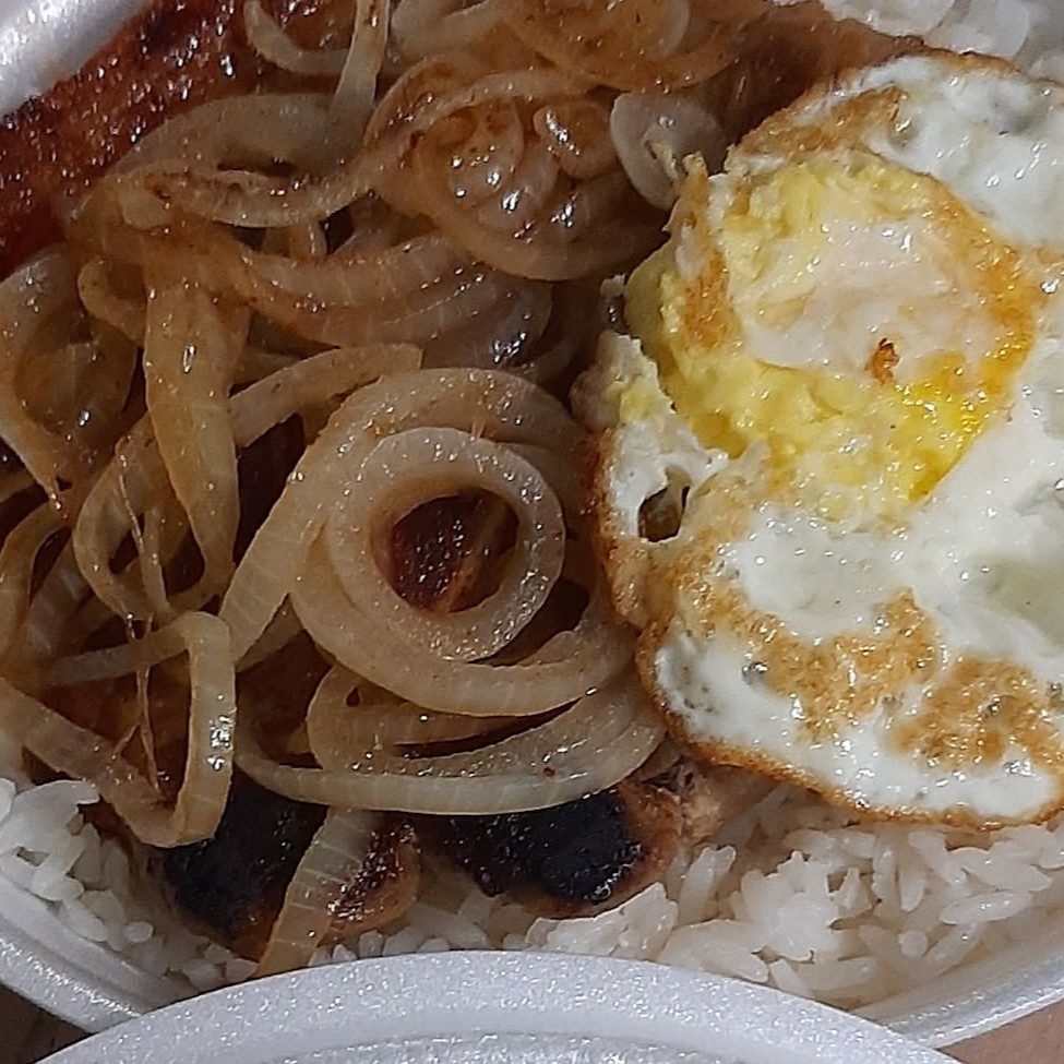 (Mini) Marmitex/ Calabresa acebolada e vinagrete, Arroz e Feijão +Refri 200ml (Fanta, Coca, Guaraná)/(Fanta, Coca, Guaraná)/ (laranja, uva, maracujá)