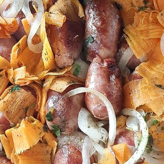 Porção Calabresa com cebola+ Fritas + molhos para fritas.
