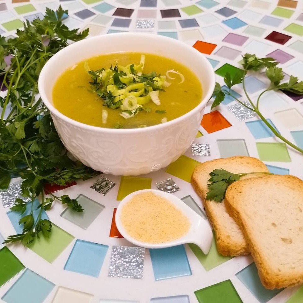Nosso Creme de Mandioquinha com Frango é feito com mandioquinha fresca, suavemente misturada com creme de leite. O frango desfiado é temperado e cozido à perfeição, realçando o sabor autêntico do prato. O toque final é dado pelos cubinhos de cebola, cuidadosamente fritos no azeite e na manteiga, proporcionando um saboroso contraste de texturas. A cebolinha e a salsinha picadinhas adicionam um fres