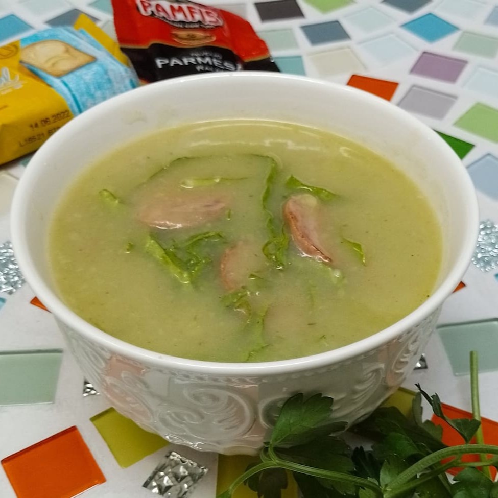 Caldo de origem portuguesa feito com creme de batatas selecionadas, calabresa defumada, bacon, couve manteiga. Temperado com cominho, Louro e coentro em pó. Com 400ml serve bem uma pessoa. Não retiramos temperos ou ingredientes