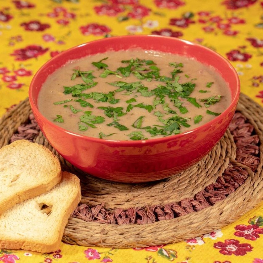 Delicioso caldo feito com a famosa feijoada da Chef. Finalizada com calabresa picada e couve manteiga. Servido em uma generosa porção de 400 ml, este prato é uma verdadeira explosão de gostosura. Não é possível retirar temperos ou ingredientes.