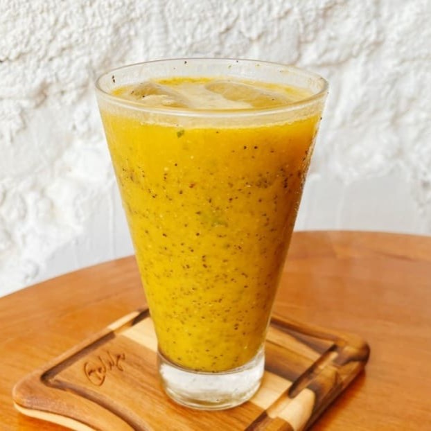 Abacaxi, laranja, manga, maracujá e manjericão. (300ml)