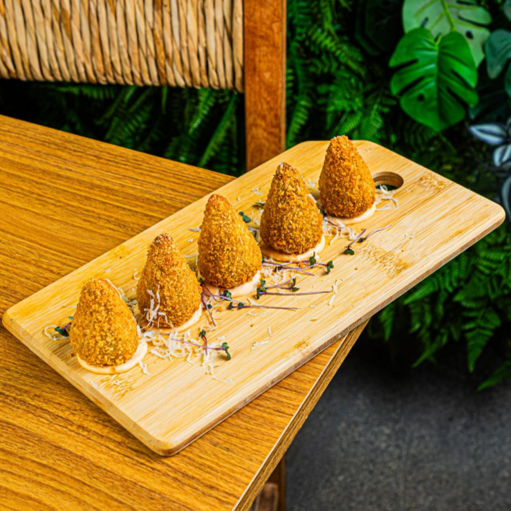 Feita de abóbora com frango e especiarias, é crocante por fora e cremosa por dentro! Finalizamos com aioli de sriracha (levemente picante) e parmesão. (contém 5 unidades)