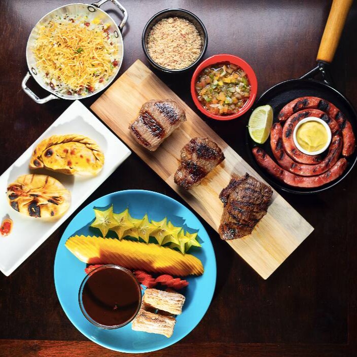 Curta uma refeição farta e deliciosa com sua companhia (ideal para até 3 pessoas)! 2 empanadas, 225g de linguiça artesanal, 260g de fraldinha, 260g de ancho, 3 acompanhamentos (tamanho grande) e sua escolha entre 1 crepe de doce de leite ou 2 mini pudins de leite.