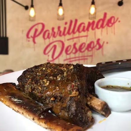 Nossa costela é assada e desmancha na boca! Extremamente macia, saborosa e bem temperada com um molho da casa à base de cerveja e chimichurri!