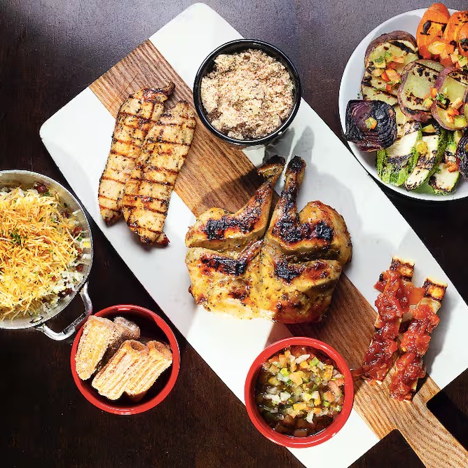Curta uma refeição deliciosa e saudável com sua companhia (ideal para até 3 pessoas)! 2 escolhas entre pão de alho, choripan e queijo coalho, 300g de saint peter, 150g de filé de frango, 3 acompanhamentos (tamanho grande) e, para finalizar, já que todos merecem um docinho, sua escolha entre 1 crepe de doce de leite e 2 mini pudins de leite.