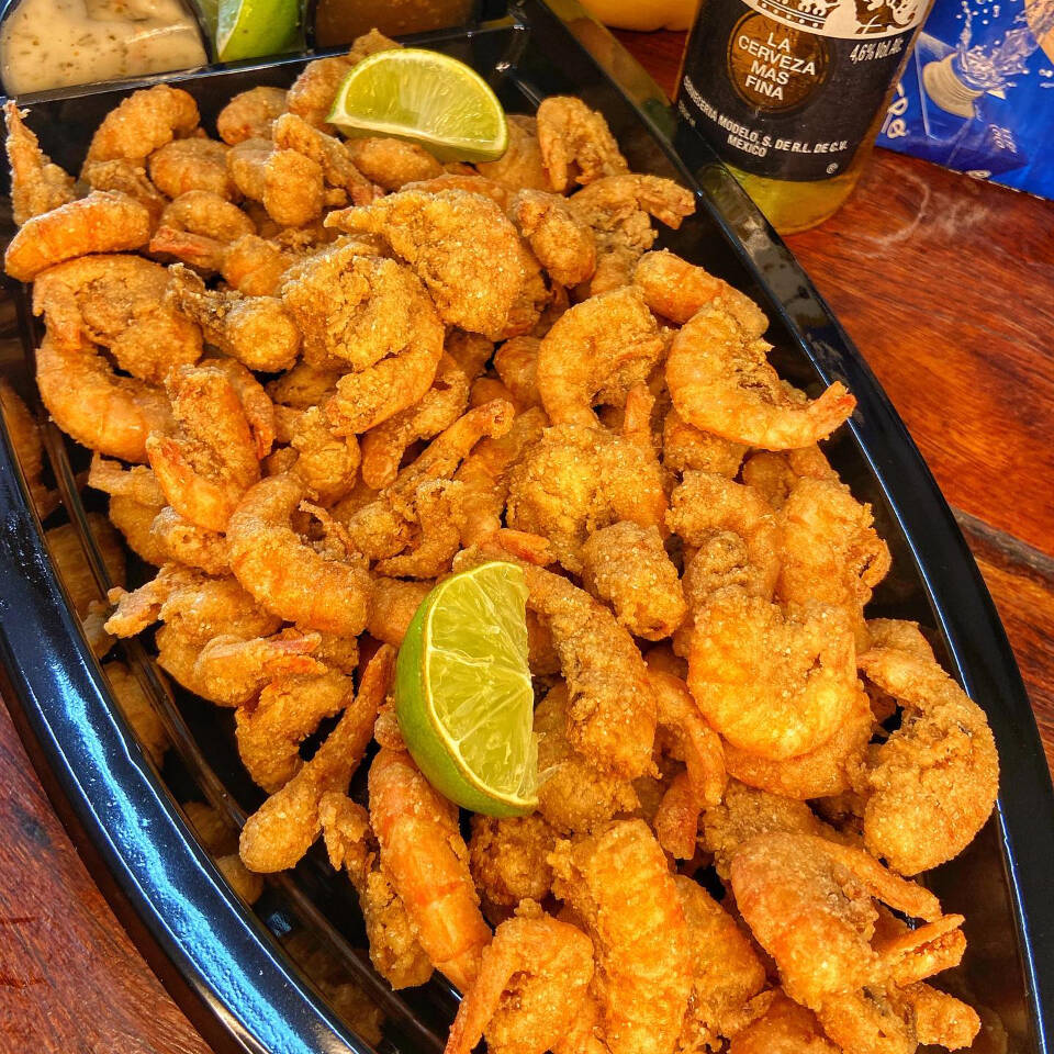 Barca de Camarão 7 Barbas selecionado, empanado e crocante, com aquele limão que faz ficar perfeito. Tudo isso + Coca-Cola 2 l grátis