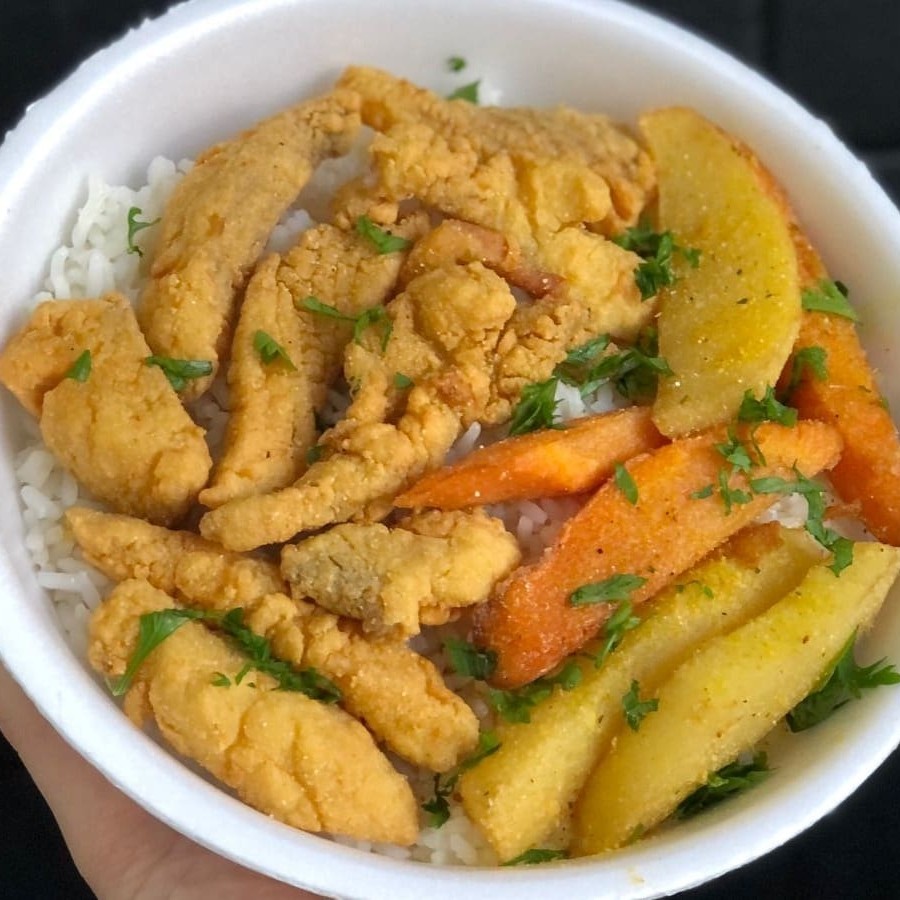 Aqui você tem refeição completa e saborosa, composta por um arroz soltinho, iscas de peixe empanadas e selecionadas e batatas fritas sequinhas. #peixe #camarão #camarao #executivo #refeição #marmitex #marmita #comidanordestina #brasileira