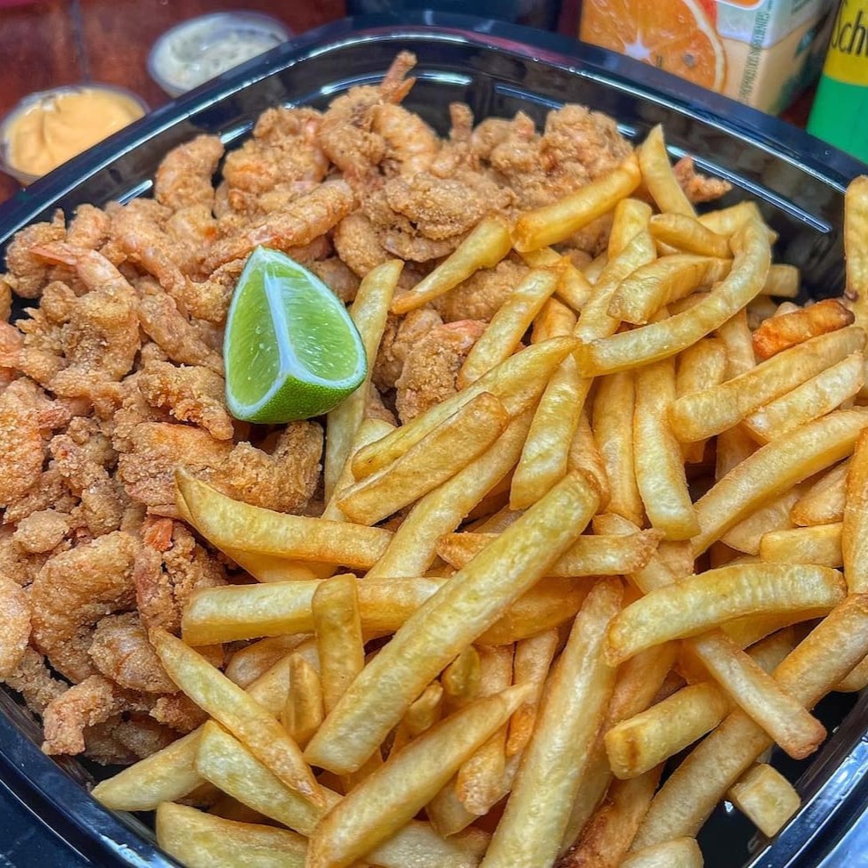 Barca Camarão + Isca De Peixe +fritas (serve 2 Pessoas)