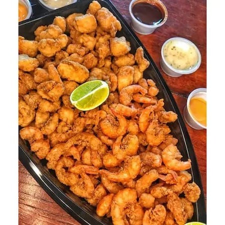 Barca de Camarão 7 Barbas selecionado, empanado e crocante, com aquele limão que faz ficar perfeito. Tudo isso + Coca-Cola 2 l grátis