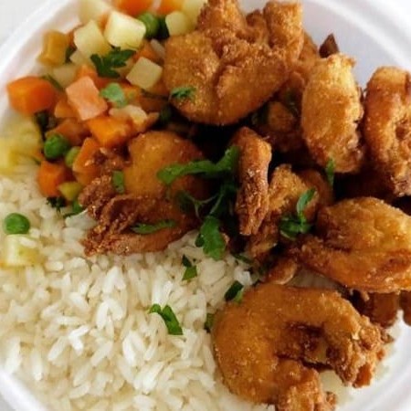 Esta delícia é composta por arroz fresquinho, servido ao lado de um camarão empanado, de textura irresistivelmente crocante. Para complementar, uma seleção de legumes frescos e coloridos. Uma refeição completa de 500 gramas para seu almoço ou jantar. #camarão #camarao #executivo #refeição #marmitex #marmita #comidanordestina #brasileira #peixe