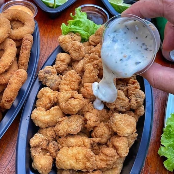 Inclui: camarão 7 barbas, frescos e suculentos, combinados com irresistíveis iscas de filé de merluza, cuidadosamente empanadas para uma crocância perfeita e batatas fritas palito Mccain, perfeitamente douradas e crocantes. Acompanha molho exclusivo da casa. #porção #camarão #camarao #fritas #batatafrita #peixe #frutosdomar