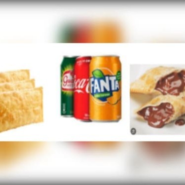 Pastel (carne, queijo mussarela ou calabresa com queijo mussarela) Refrigerante (Coca Cola, Sukita Laranja ou Guaraná)