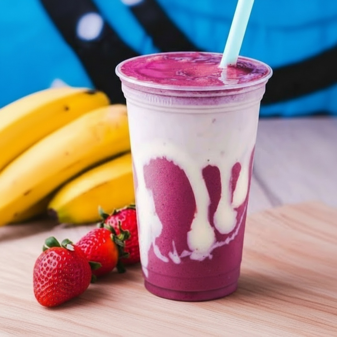Açaí batido com leite, fruta e adicionais a sua escolha