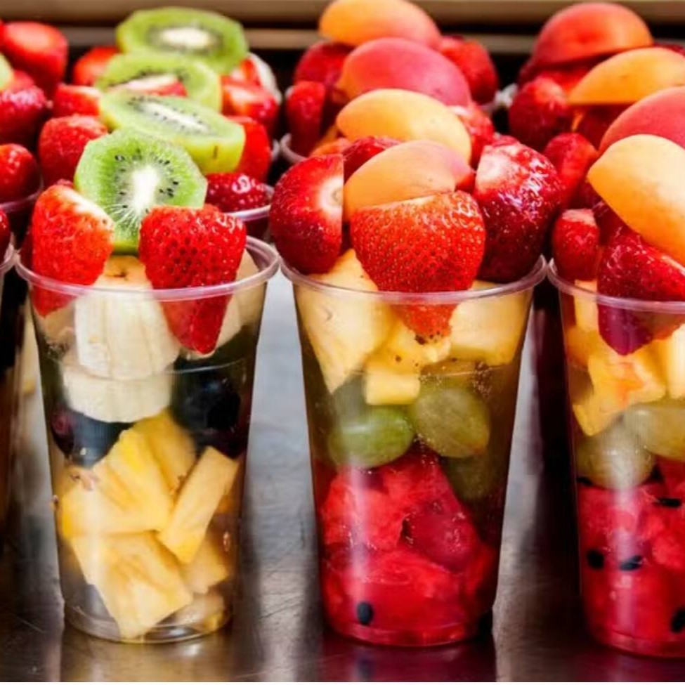 Nossa salada de frutas com no mínimo 4 frutas da estação frescas e cortadinhas.