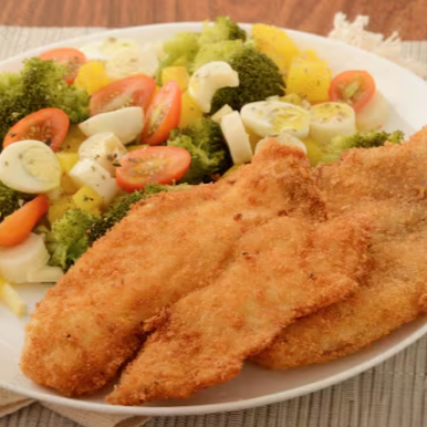 Filé De Peixe À Milanesa Com Batatas Douradas