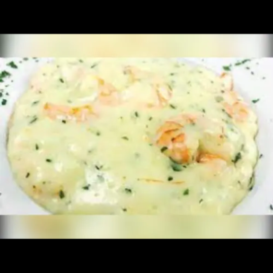 Camarões descascados na casa, cozidos e refogados no molho branco com Catupiry Original. Acompanha arroz branco.