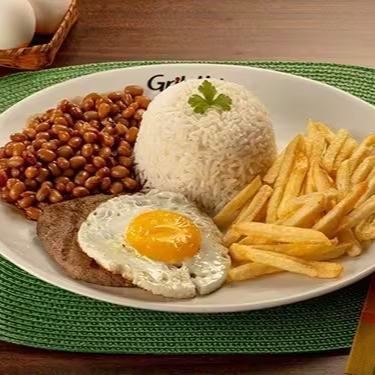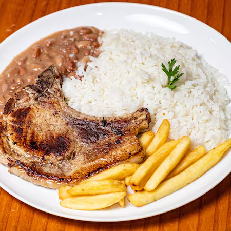 Bisteca Grelhada, suculenta e generosamente temperada, batatas fritas, crocantes e sequinhas + Arroz com feijão fesco + Salada do Dia + Farofa grátis!