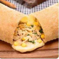 Deliciosa massa de pastel recheada de frango desfiado com catupiry.