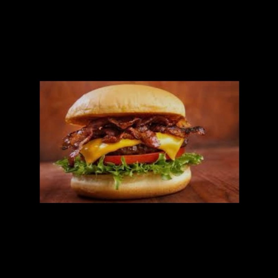 Pão, maionese, hamburguer, musarela,bacon, cheddar, alface e tomate