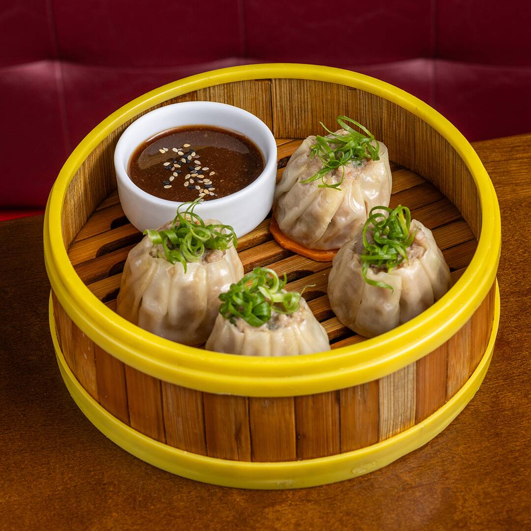 No vapor, recheado com carne de de porco e camarão, acompanhado de molho hoisin frutado. (4 un.)