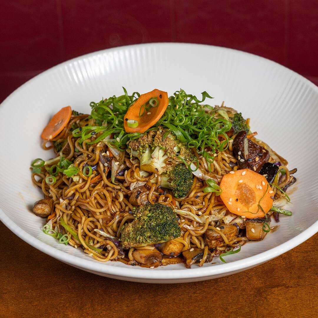 Yakisoba com cogumelos paris, shitake, wanyi e mix de vegetais com toques de gengibre.