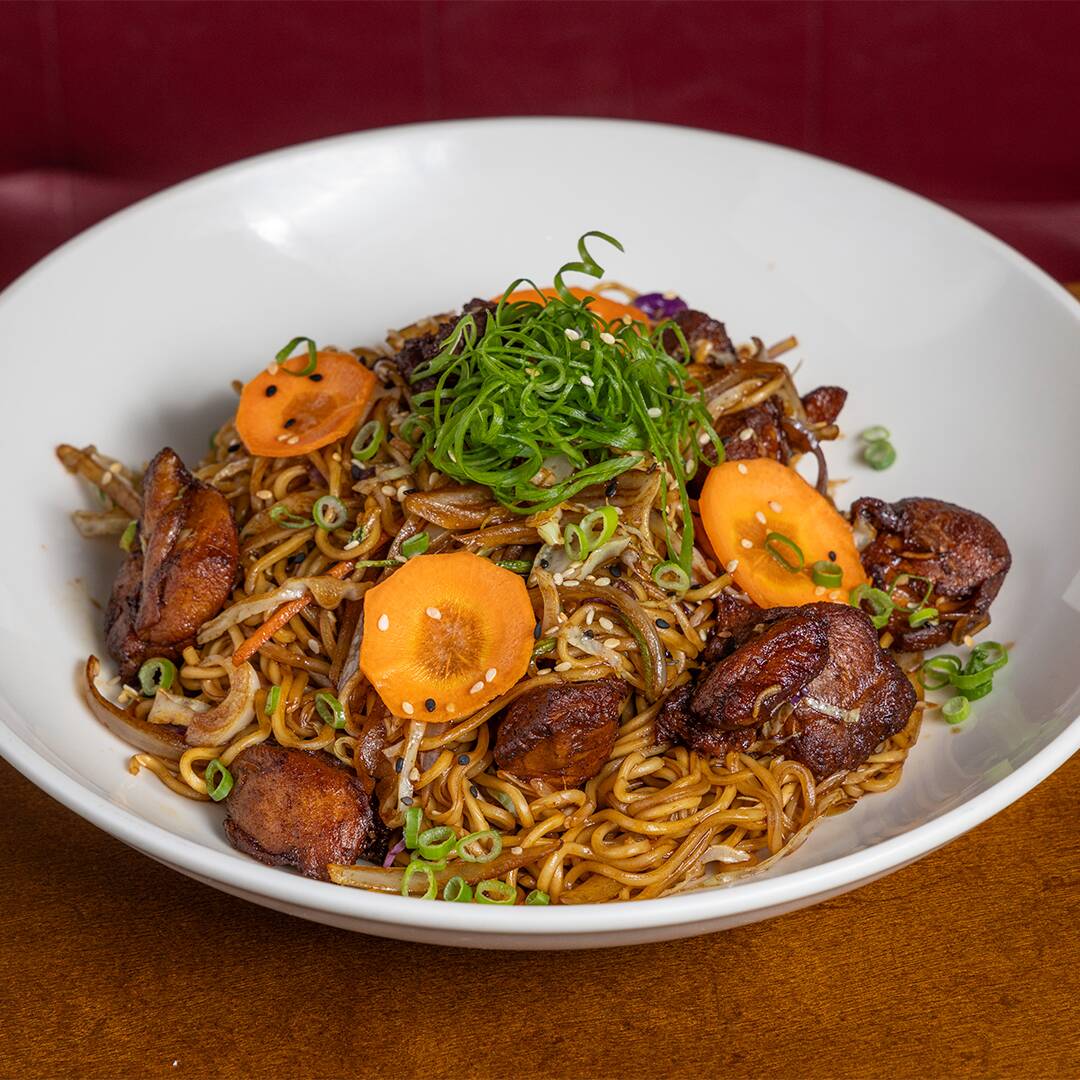 Yalisoba com cogumelos paris, shitake, wanyi e mix de vegetais com toques de gengibre.