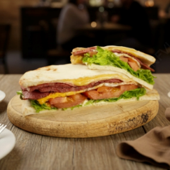 Lombo , ovo, bacon,cheddar,alface e tomate