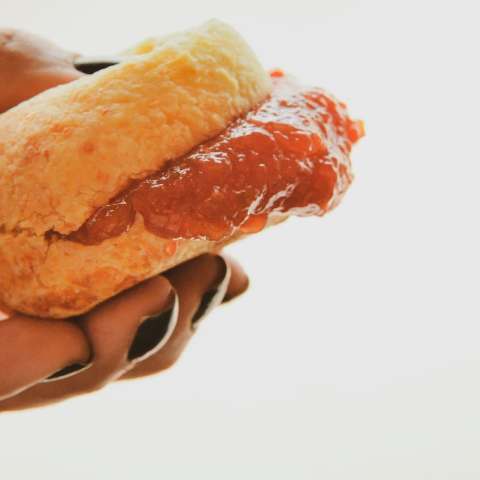 Nosso pão de queijo Dona Celina Artesanal, com doce de leite Aviação. Difícil é comer só um.