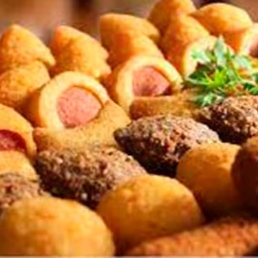 Nesse Combo 03 você tem: 50 salgados sortidos. Nossa variedade inclui: Coxinha, bolinho de queijo, kibe, risole de pizza e bolinho de calabresa + 20 Churros de Doce de leite.