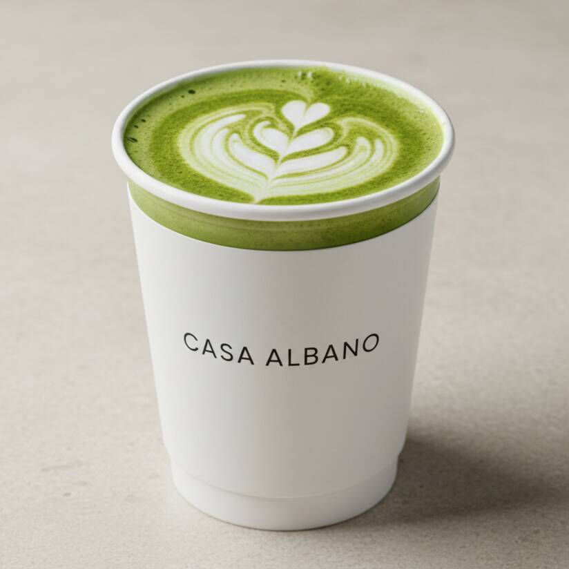 Matcha Latte - O equilíbrio perfeito entre sabor e bem-estar. Preparado com o puro chá verde matcha, nosso latte é cremoso e oferece uma explosão de antioxidantes. Ideal para um momento de relaxamento ou para começar o Dia com energia e sofisticação. Experimente essa combinação única e deliciosa!"