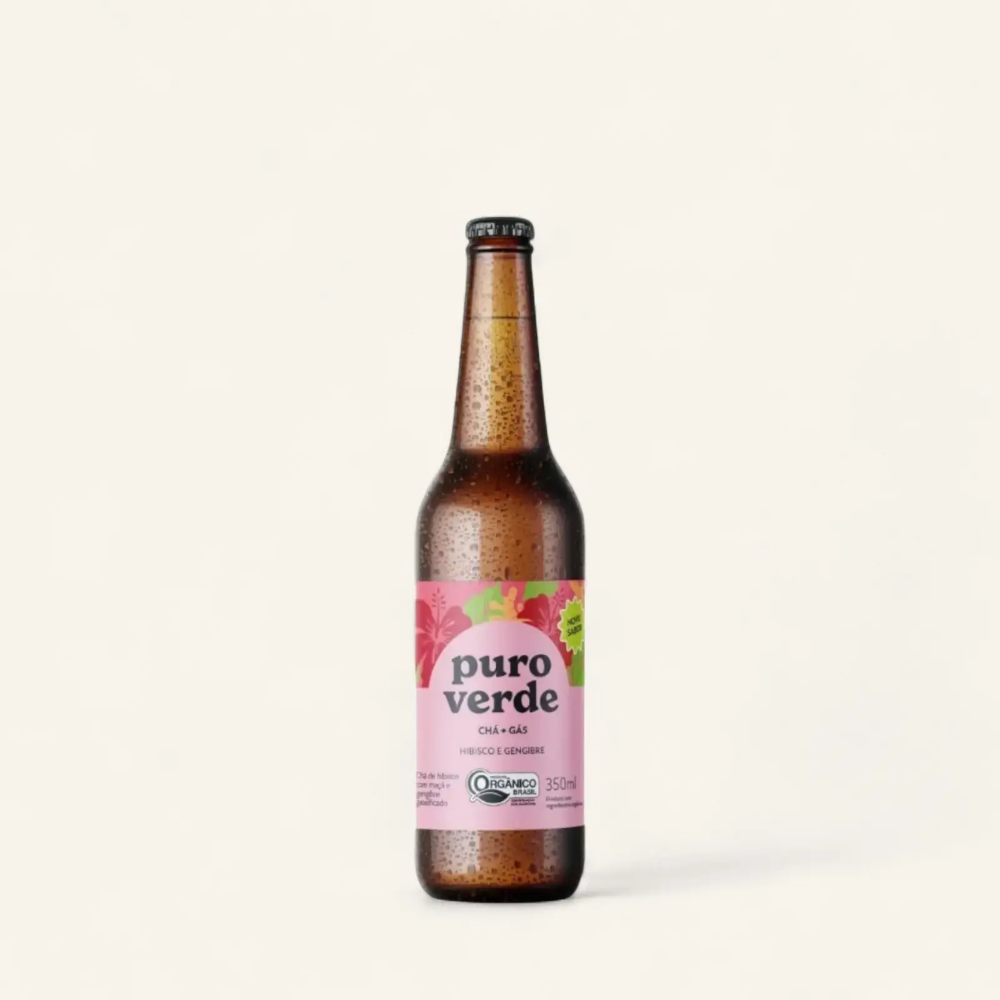 Chá Gaseificado Hibisco Com Gengibre Puro Verde 350ml