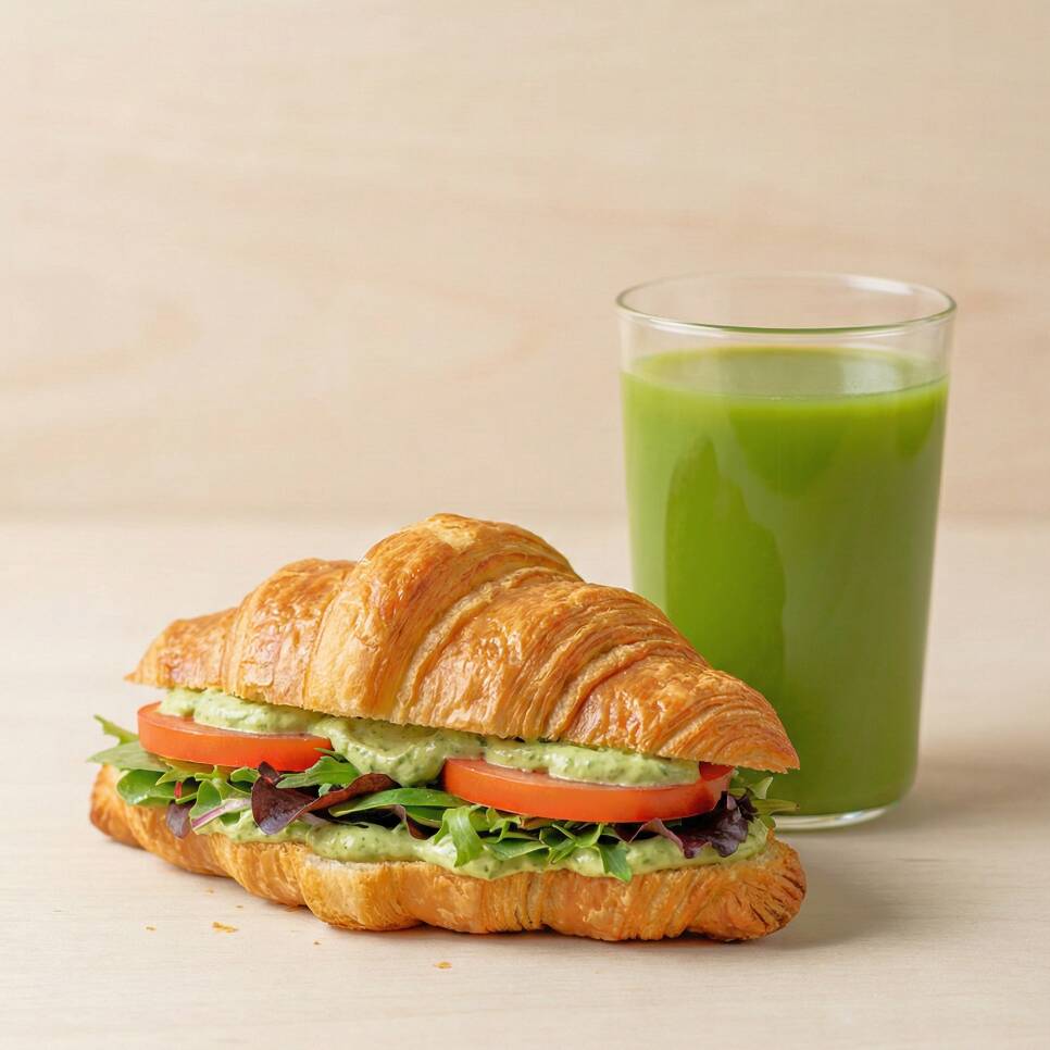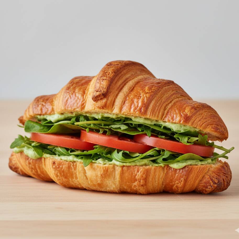 Um croissant artesanal vegano leve e crocante, recheado com lascas frescas de tomate, mix de folhas selecionadas e nossa exclusiva maionese verde proteica – cremosa, saborosa e cheia de nutrientes. Uma explosão de sabor e frescor em cada mordida! Ideal para quem busca leveza sem abrir mão do prazer de comer bem.