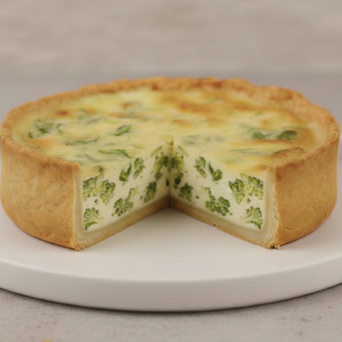 Deliciosa quiche de brócolis 100% vegana, sem lactose e rica em proteínas! Massa crocante e recheio cremoso à base de ingredientes naturais e nutritivos. Perfeita para uma refeição leve, saudável e cheia de sabor!