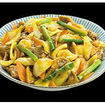 Filé fatiado, brócolis, couve-flor, cenoura, repolho, acelga, pimentão, cebola e molho shoyu