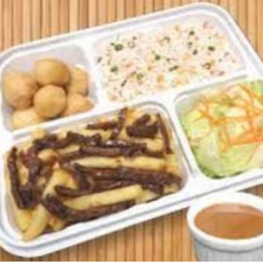 Mix Carne Com Batata + Yakimeshi + Salada E Frango Empanado