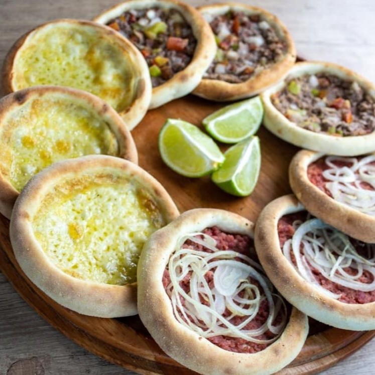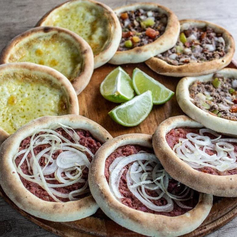 5 esfihas de carne + 5 esfihas de queijo.