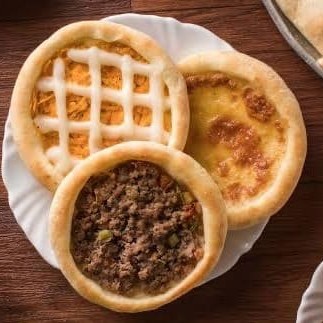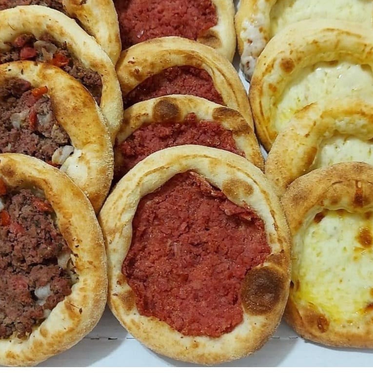 5 esfihas de carne, 5 esfihas de queijo e 5 esfihas de calabresa.
