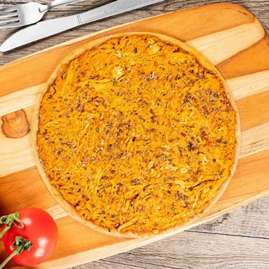 Deliciosa pizza grande (8 pedaços) com opção única de sabor à sua escolha + borda recheada grátis de requeijão cremoso ou cheddar.
