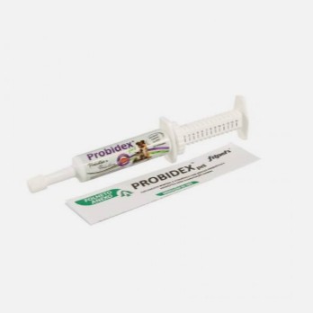 Probidex é um suplemento composto por Aditivo Probiótico e Aditivo Prebiótico, em associação com Vitaminas e Minerais quelatados. Contém em sua formulação micro-organismos probióticos e MOS que contribuem no desenvolvimento e manutenção de uma microbiota intestinal saudável. Indicado para Cães e Gatos, em todas as fases de vida. Cães de pequeno porte: Filhotes: 1g a 2g a cada 24 horas, durante 7 dias. Adultos: 2g a 4g a cada 24 horas, durante 7 dias. Cães de médio e grande porte: Filhotes: 2g a 4g a cada 24 horas, durante 7 dias. Adultos: 4g a 6g a cada 24 horas, durante 7 dias. Gatos: Filhotes: 1g a cada 24 horas, durante 7 dias. Adultos: 2g a cada 24 horas, durante 7 dias.
