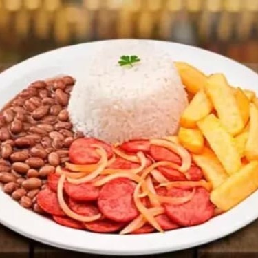 feijao de corda, arroz e baco e calabresa picada e frita#marmitex#baiaode dois#delivery#contra file#promocao####