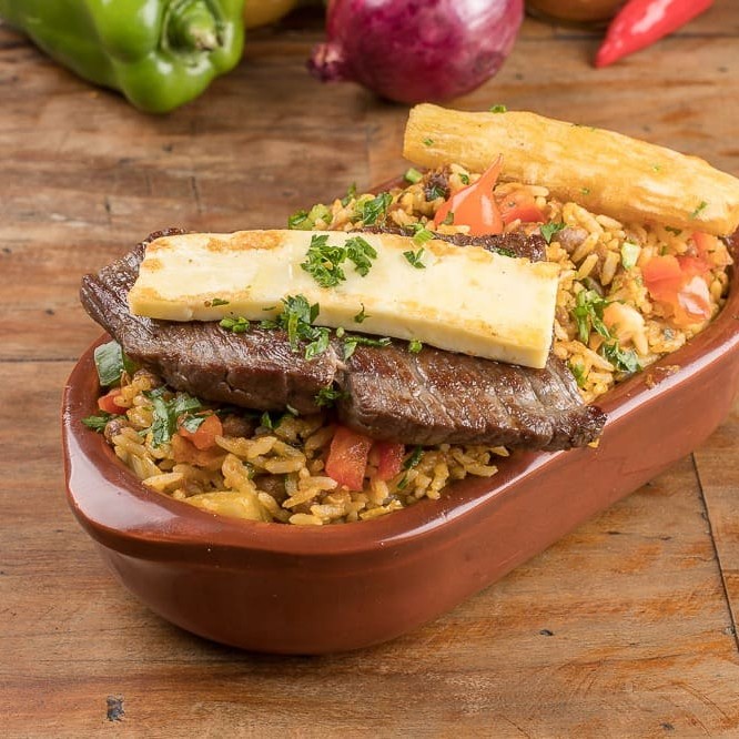 Porção Carne De Sol Acebolada Com Mandioca E Quei